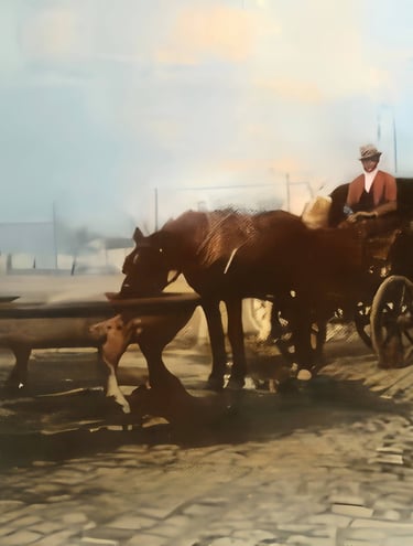 Laboratorio digital con fotos e imágenes datadas desde 1894 hasta la actualidad de Bahía Blanca, Ing. White, Cabildo y Gral. Cerri. Material restaurado y colorizado con AI generativa y/o predictiva.El bebedero de los caballos se encontraba cerca de lo que ahora es la Plaza del Tango.